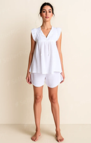 Shirt und Short mit zarter Baumwollspitze unterschiedlich im Design